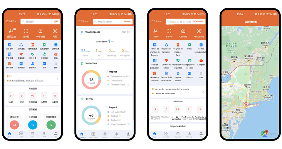 多币种跨时区:支持跨时区卫星定位考勤;支持多币种换算;支持Google地图等