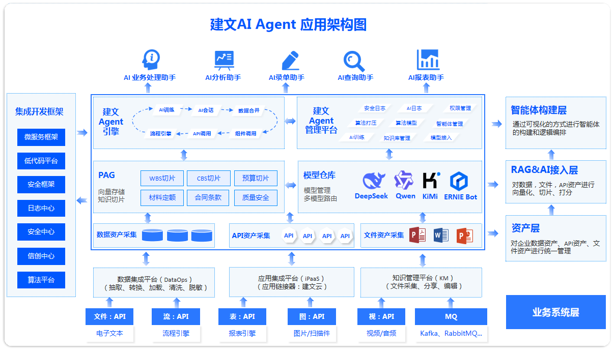 AI开放生态:建文AI Agent开放接口,开放第三方接入,形成工程AI应用生态圈;例如用AI打通设计、施工、监理等多方数据流,实现"一码一项目"的全生命周期管理。