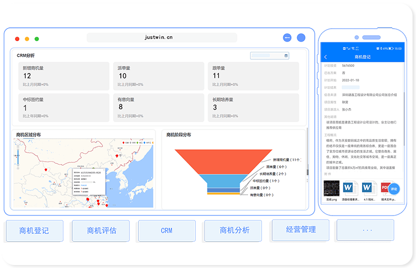 商机备案:适用于自营项目的商机登记、联营项目的商机备案。通过智能防撞单机制实时监测重复项目。