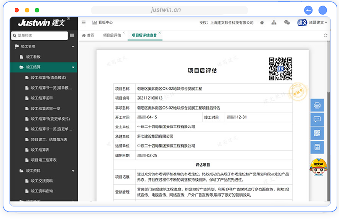 结算书审定:结算金额的审定,精准对接财务流程,可依据验收情况自动核算并审定最终结算金额,保障项目结算的准确性与公正性。